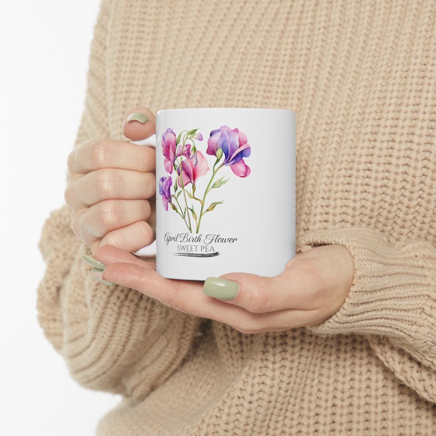 April Birth Flower (Sweet Pea): Ceramic Mug 11oz