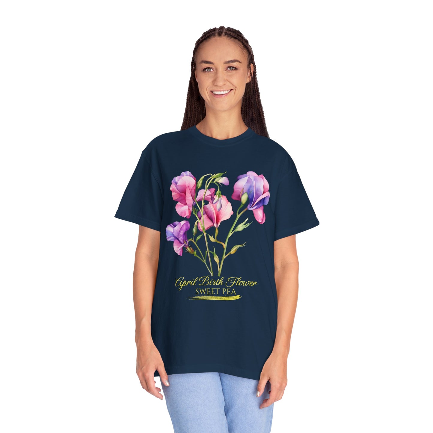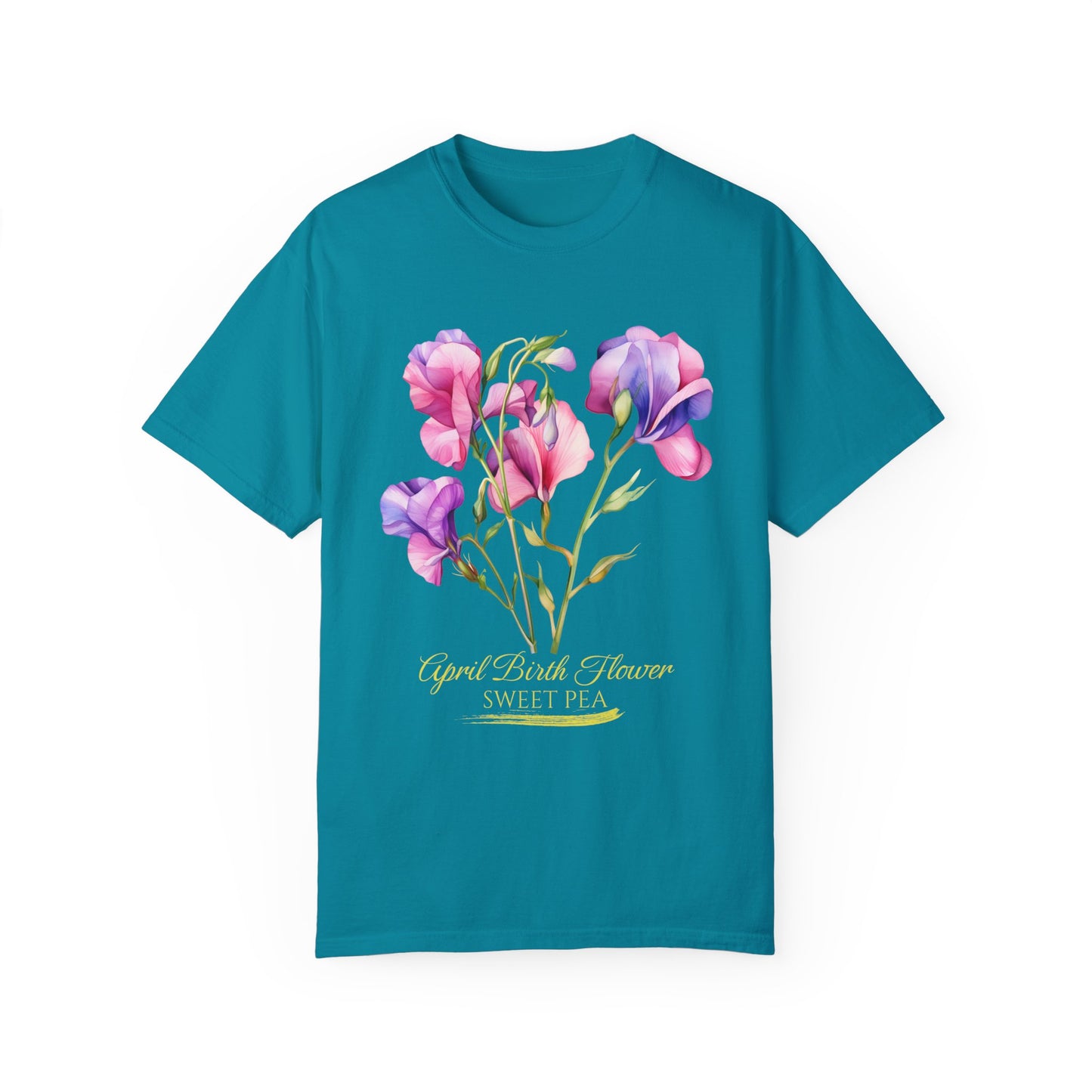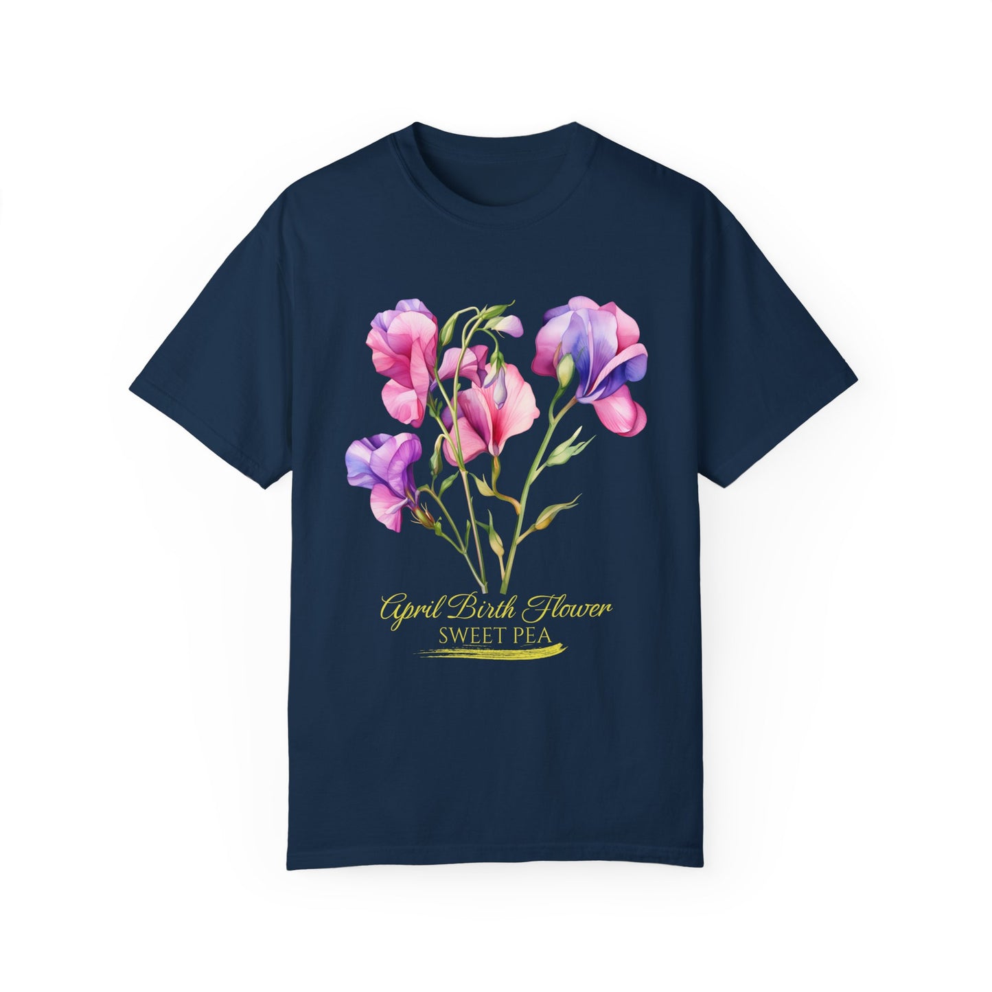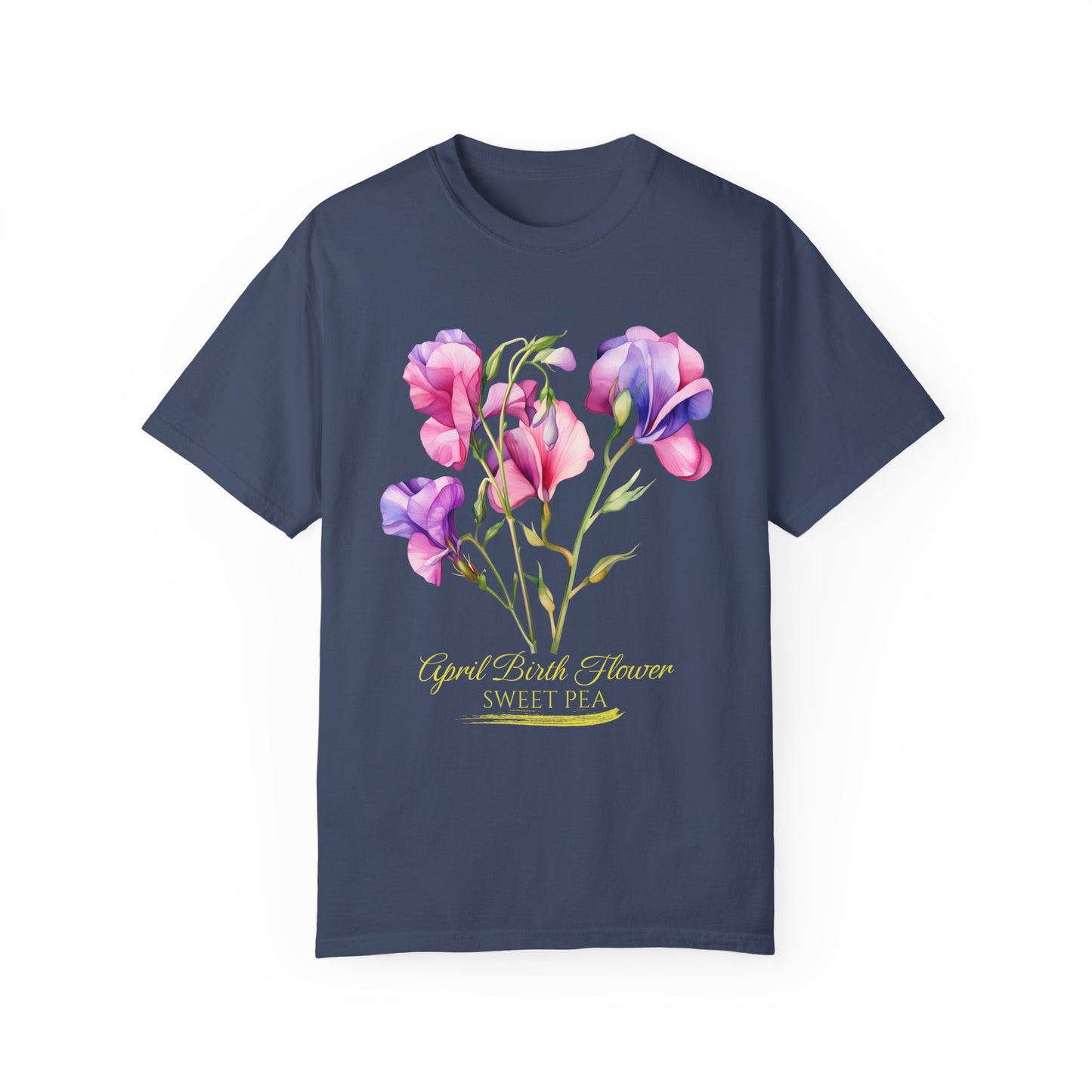 April Birth Flower "Sweet Pea" (For Print on Dark Fabric) - Unisex Garment-Dyed T-shirt