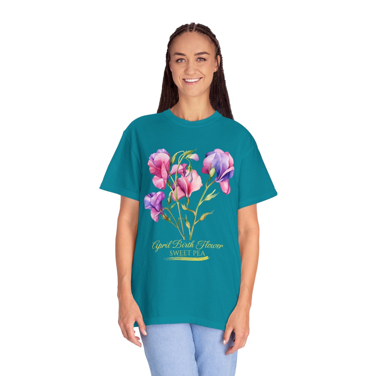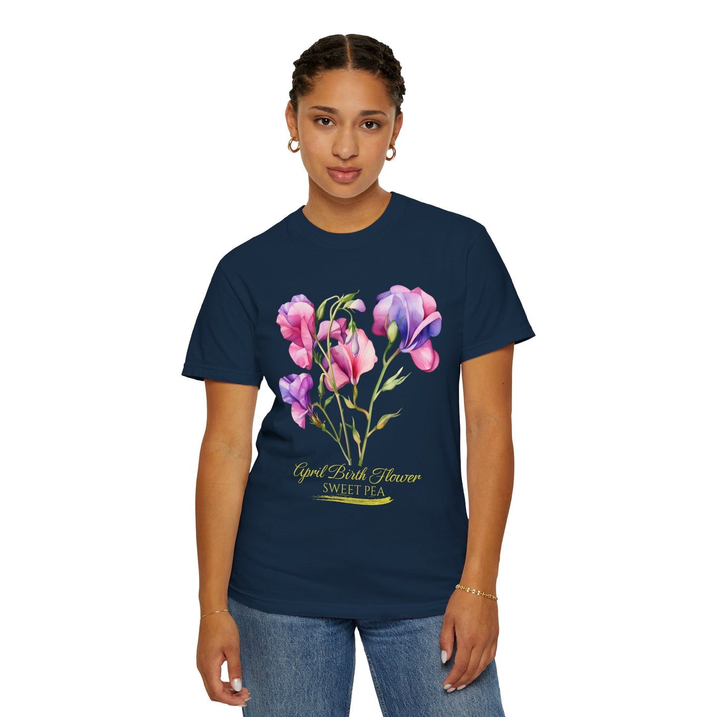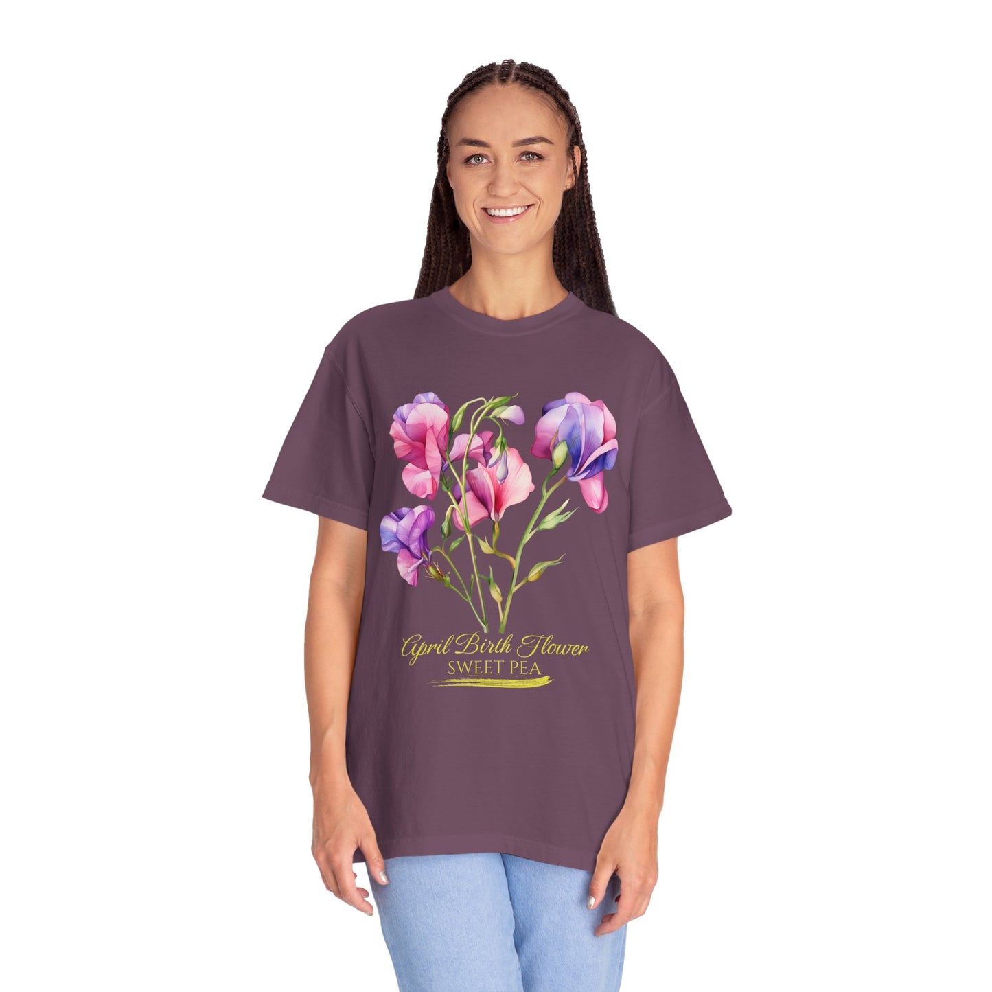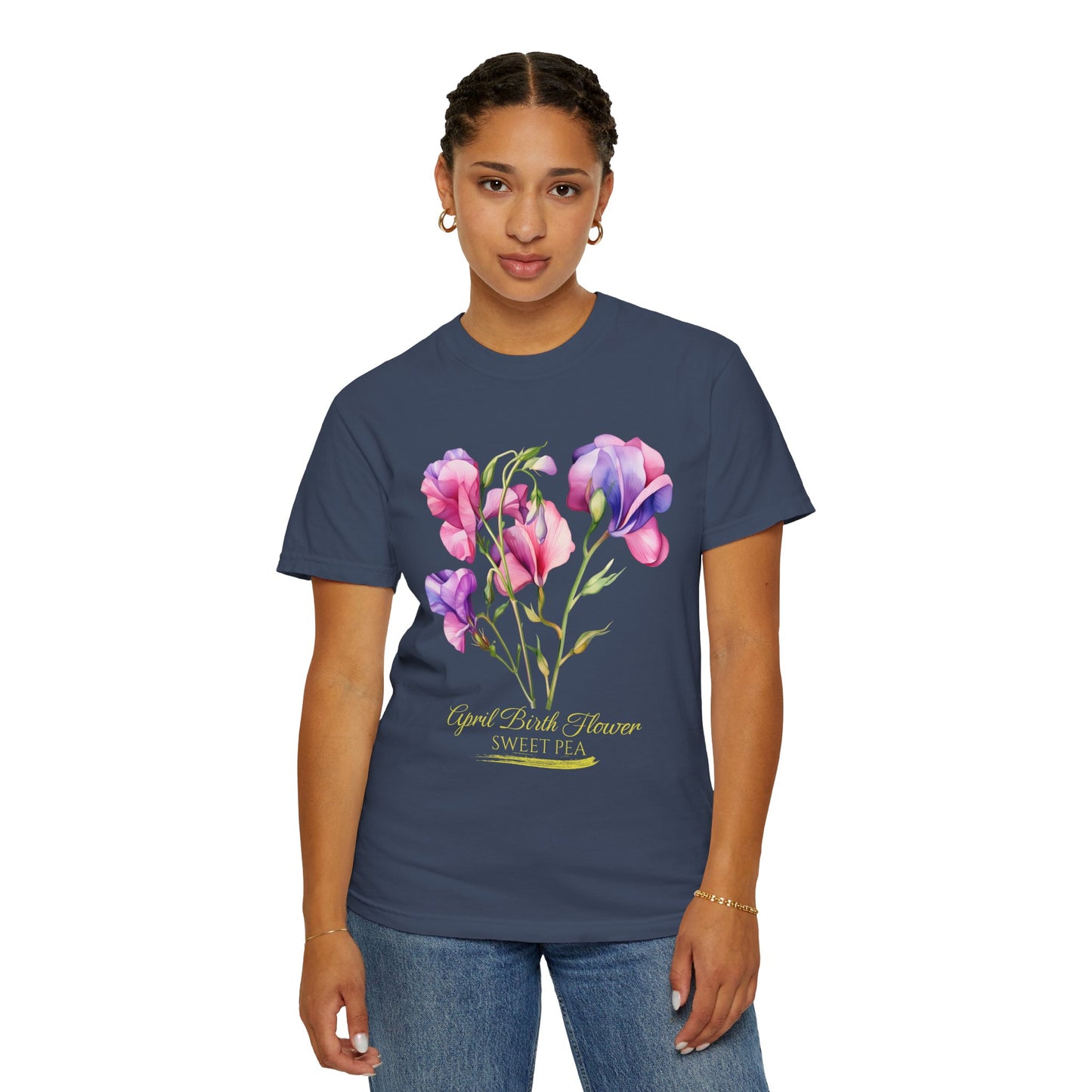 April Birth Flower "Sweet Pea" (For Print on Dark Fabric) - Unisex Garment-Dyed T-shirt