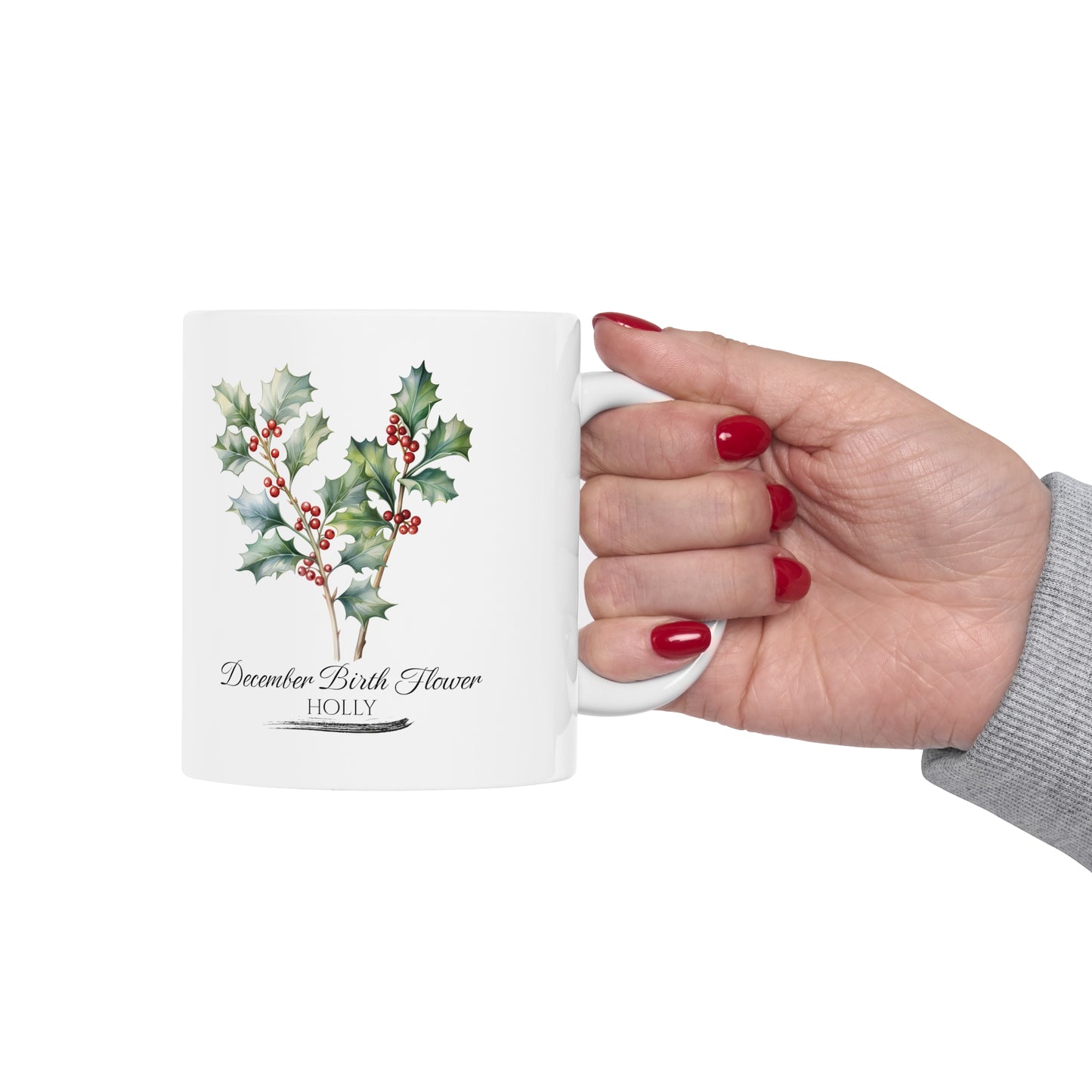 December Birth Flower (Holly): Ceramic Mug 11oz