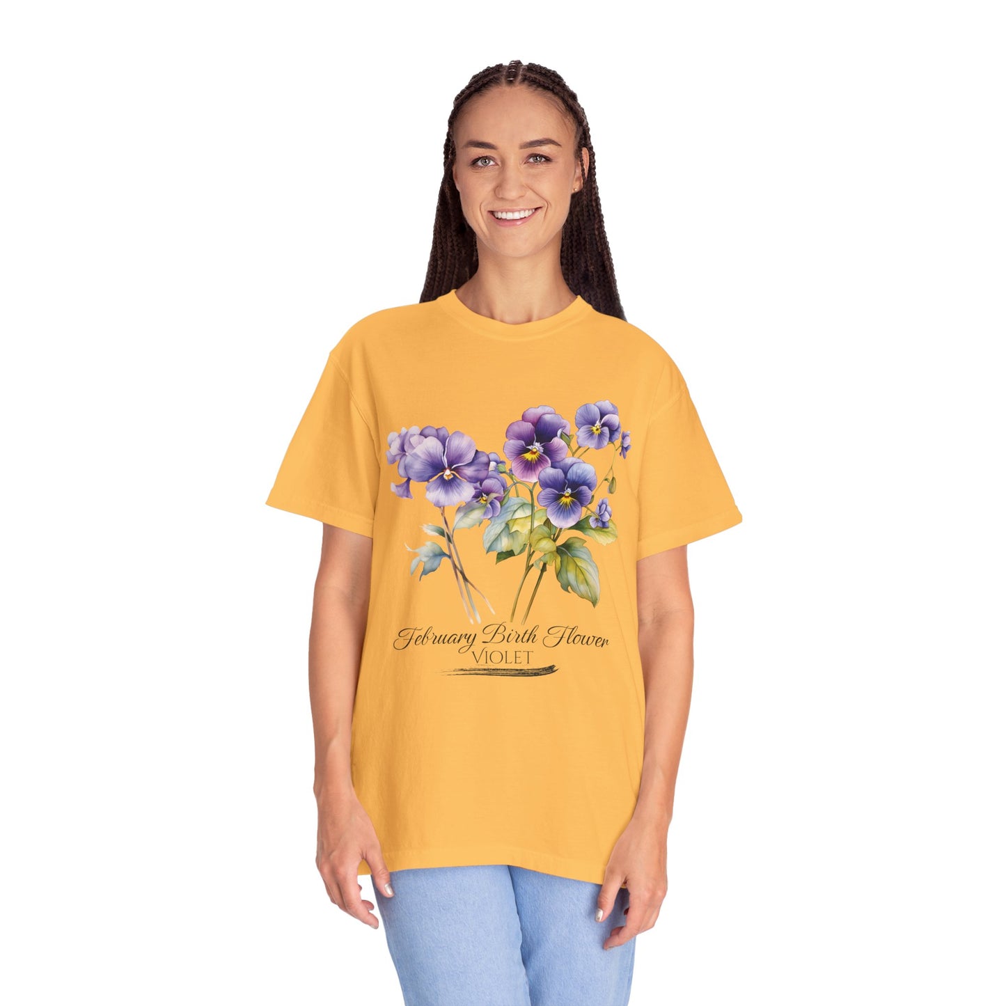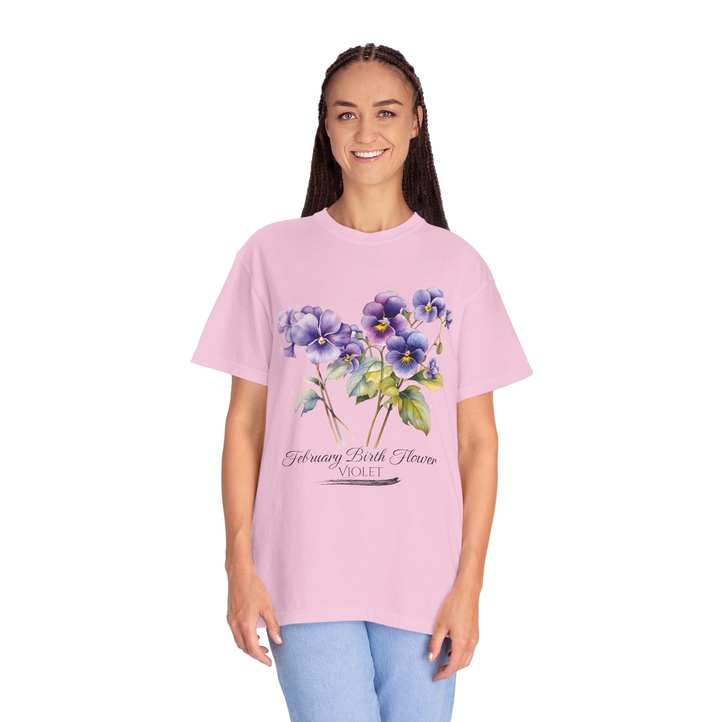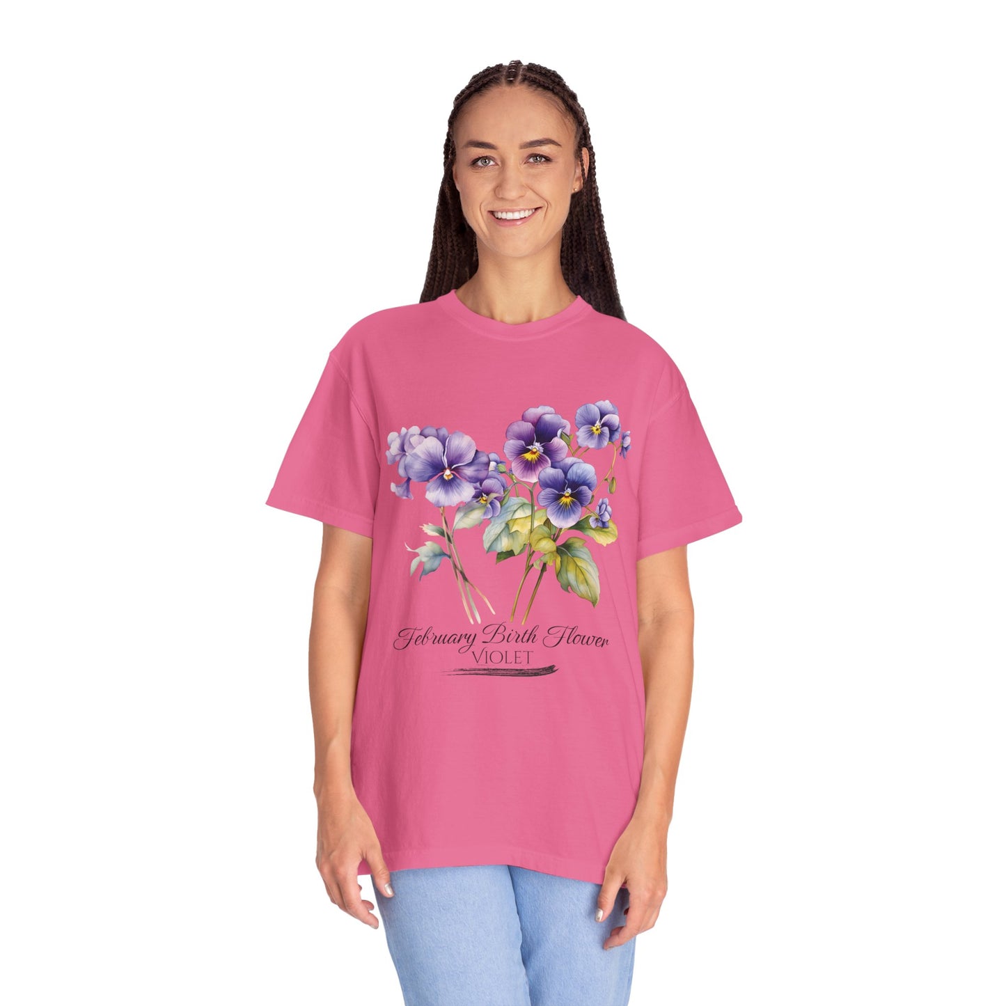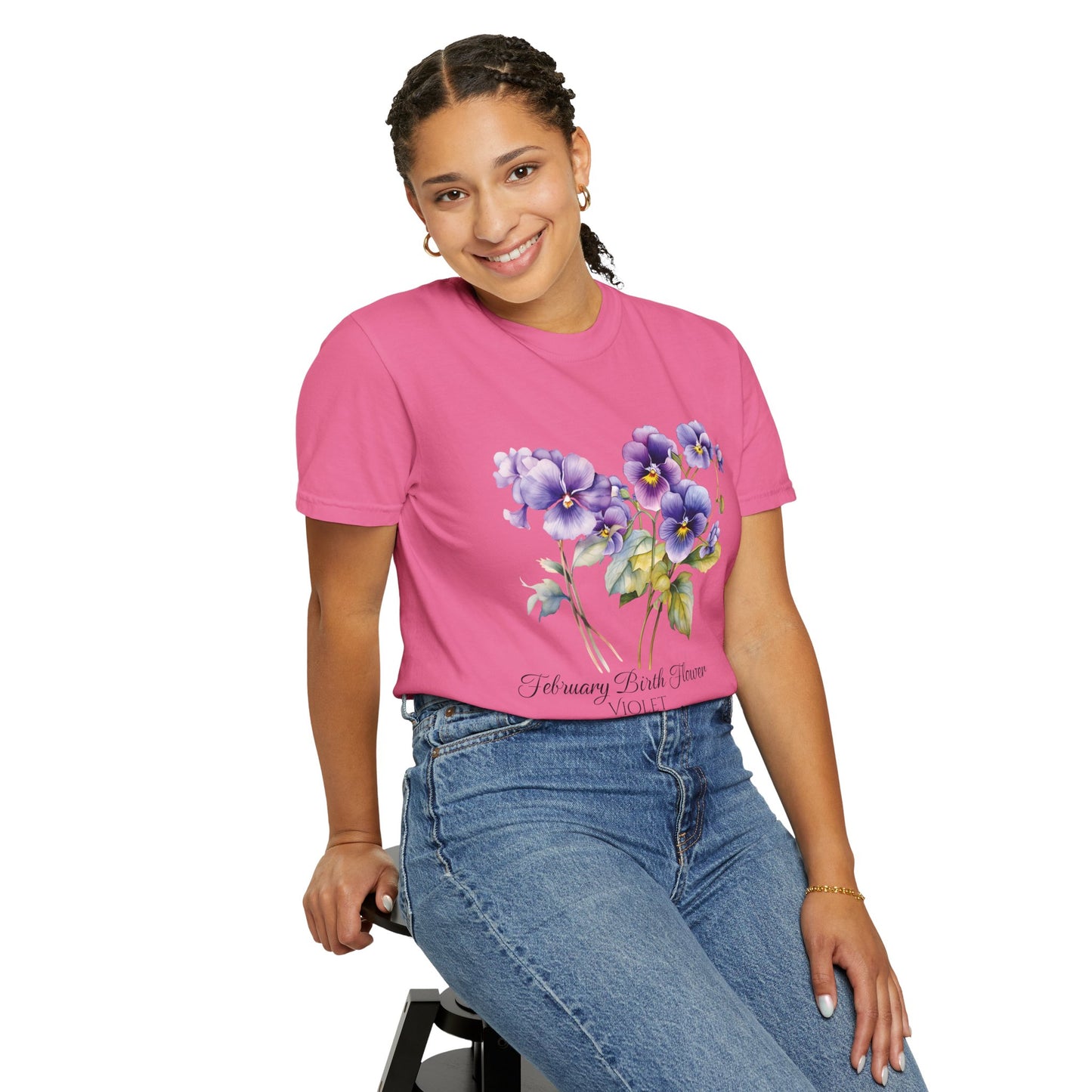 February Birth Flower "Violet" - Unisex Garment-Dyed T-shirt