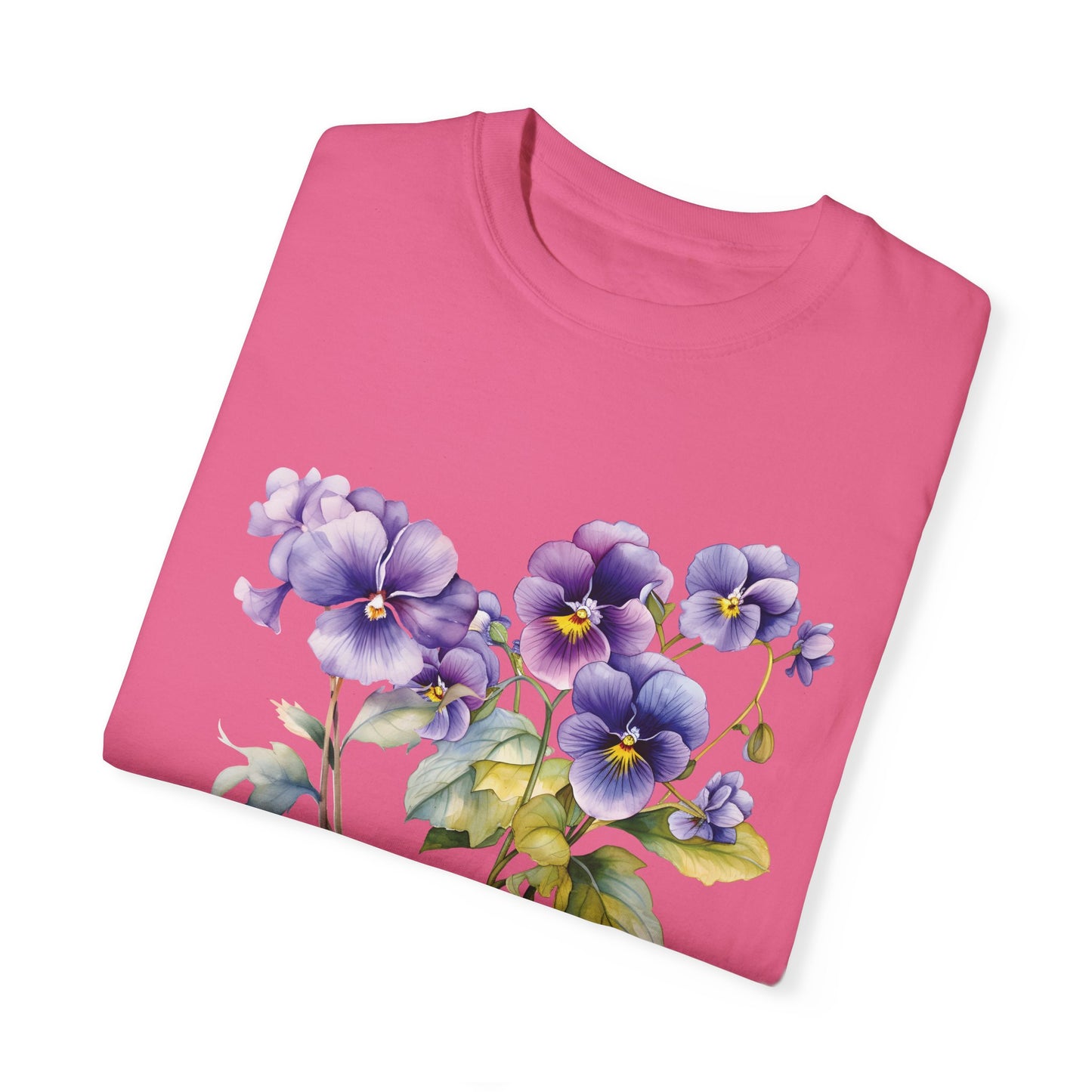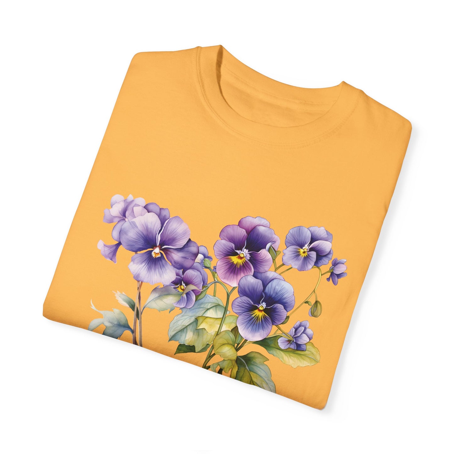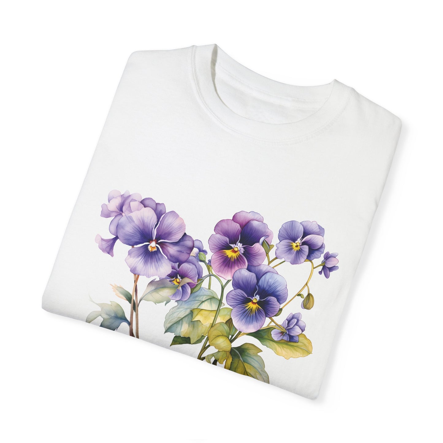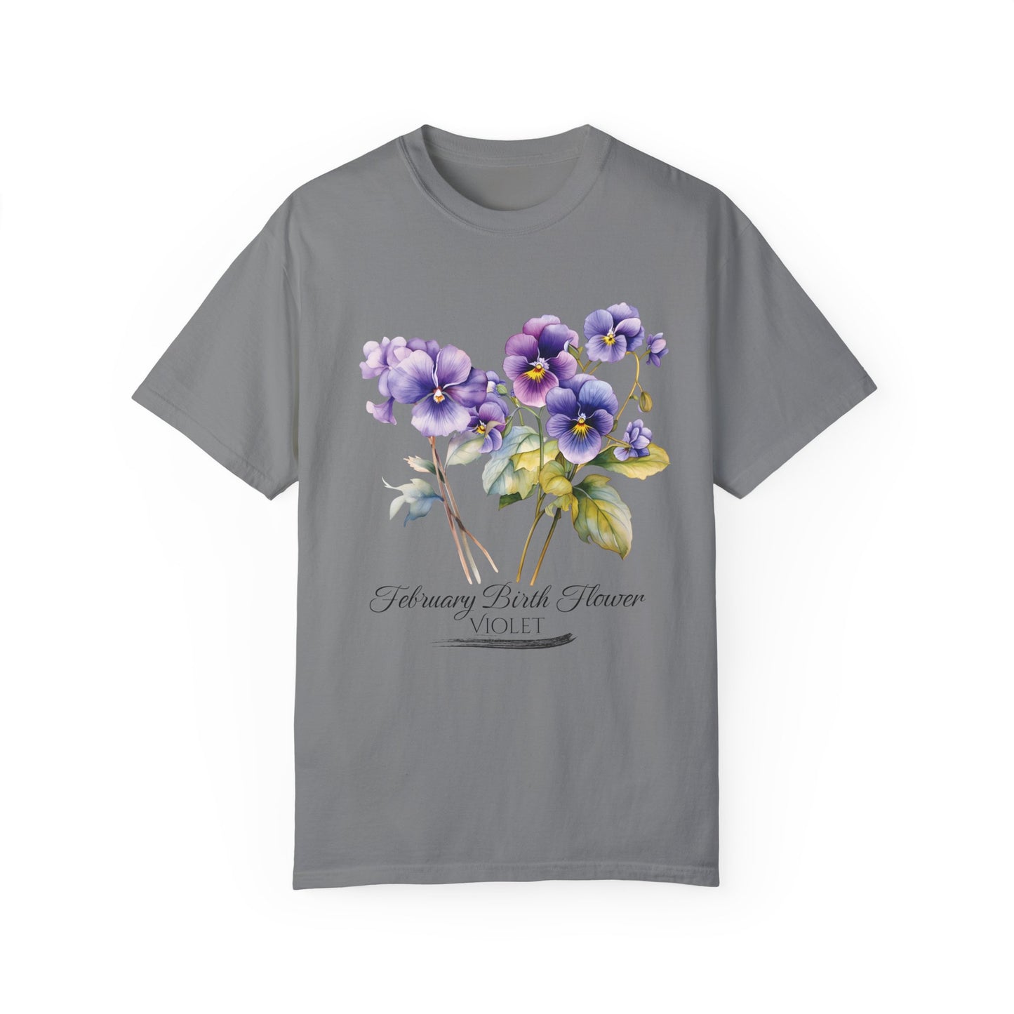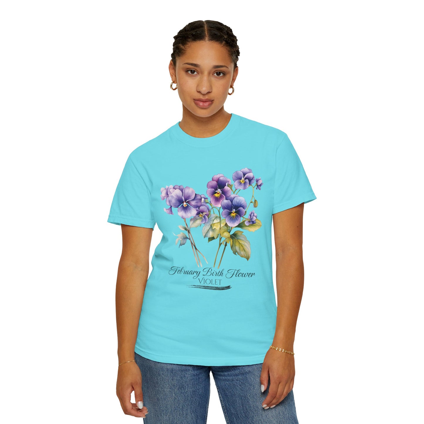 February Birth Flower "Violet" - Unisex Garment-Dyed T-shirt