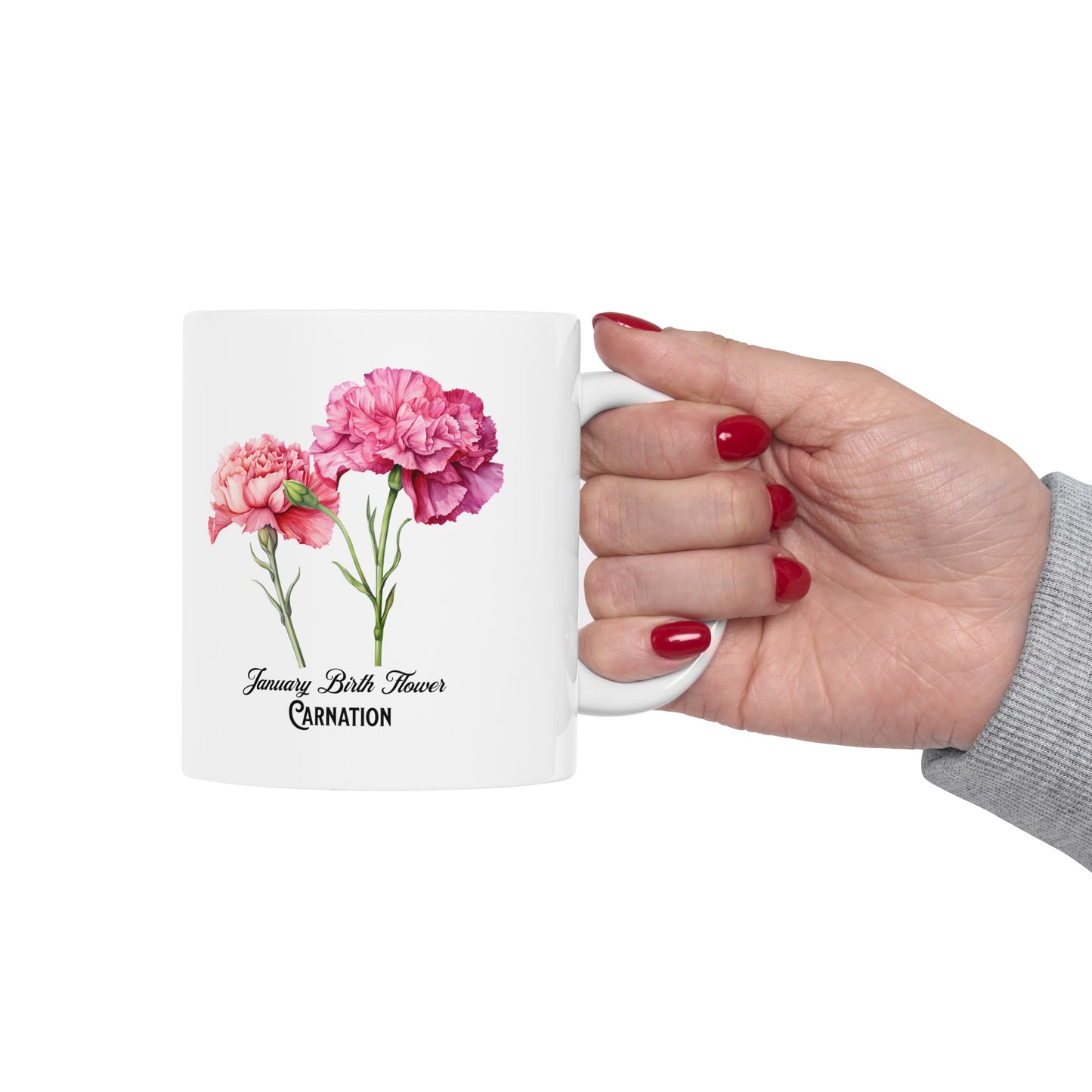 January Birth Flower (Carnation): Ceramic Mug 11oz