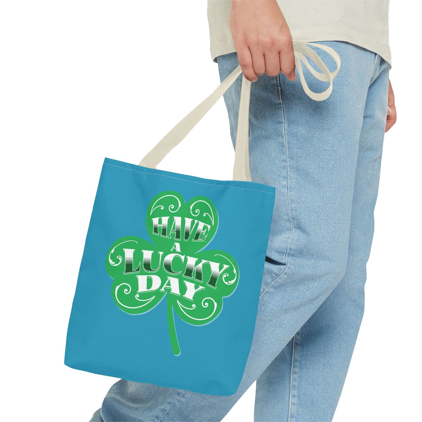Elevate your everyday style with this charming Tote Bag. Bursting with good vibes, it features a fun shamrock design and the playful phrase, "Have a Lucky Day!" Perfect for a day out shopping, a picnic in the park, or a casual outing with friends, this tote seamlessly fits into your lifestyle. Ideal for anyone who enjoys a bit of luck and whimsy in their life, it makes a fantastic gift for St. Patrick's Day, birthdays, or just because! Show off your personality while promoting sustainability by using this reusable bag.