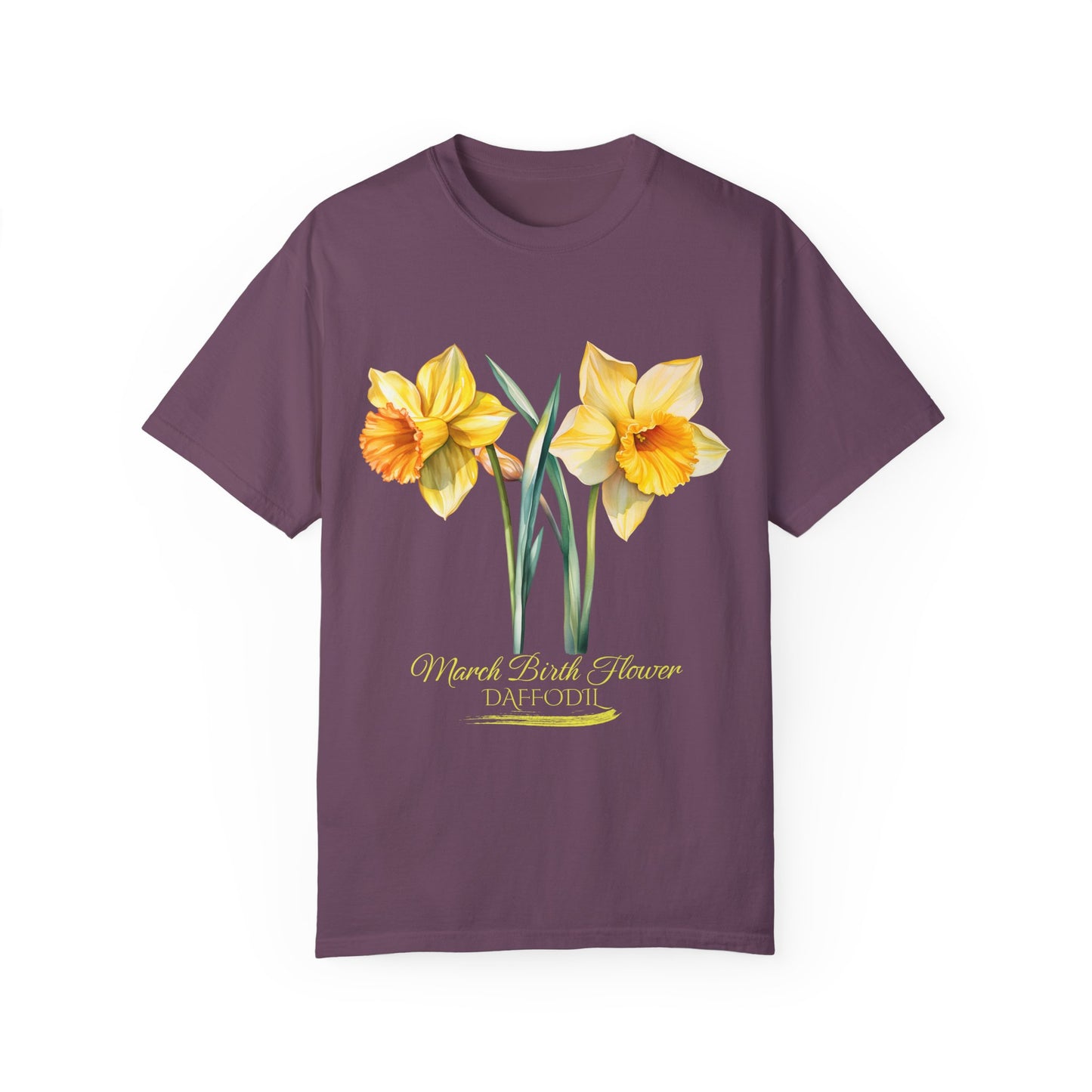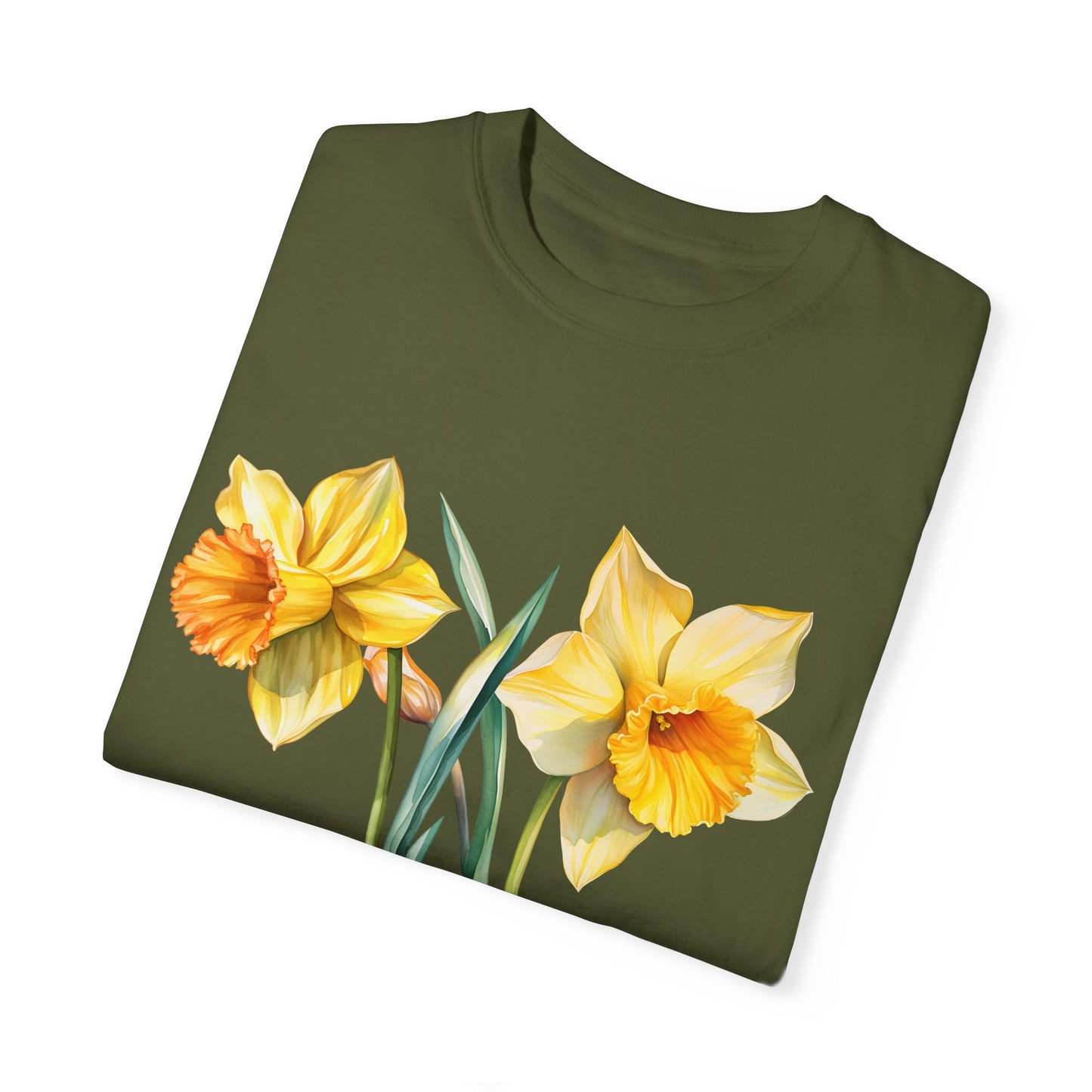 March Birth Flower "Daffodil" (For Print on Dark Fabric) - Unisex Garment-Dyed T-shirt