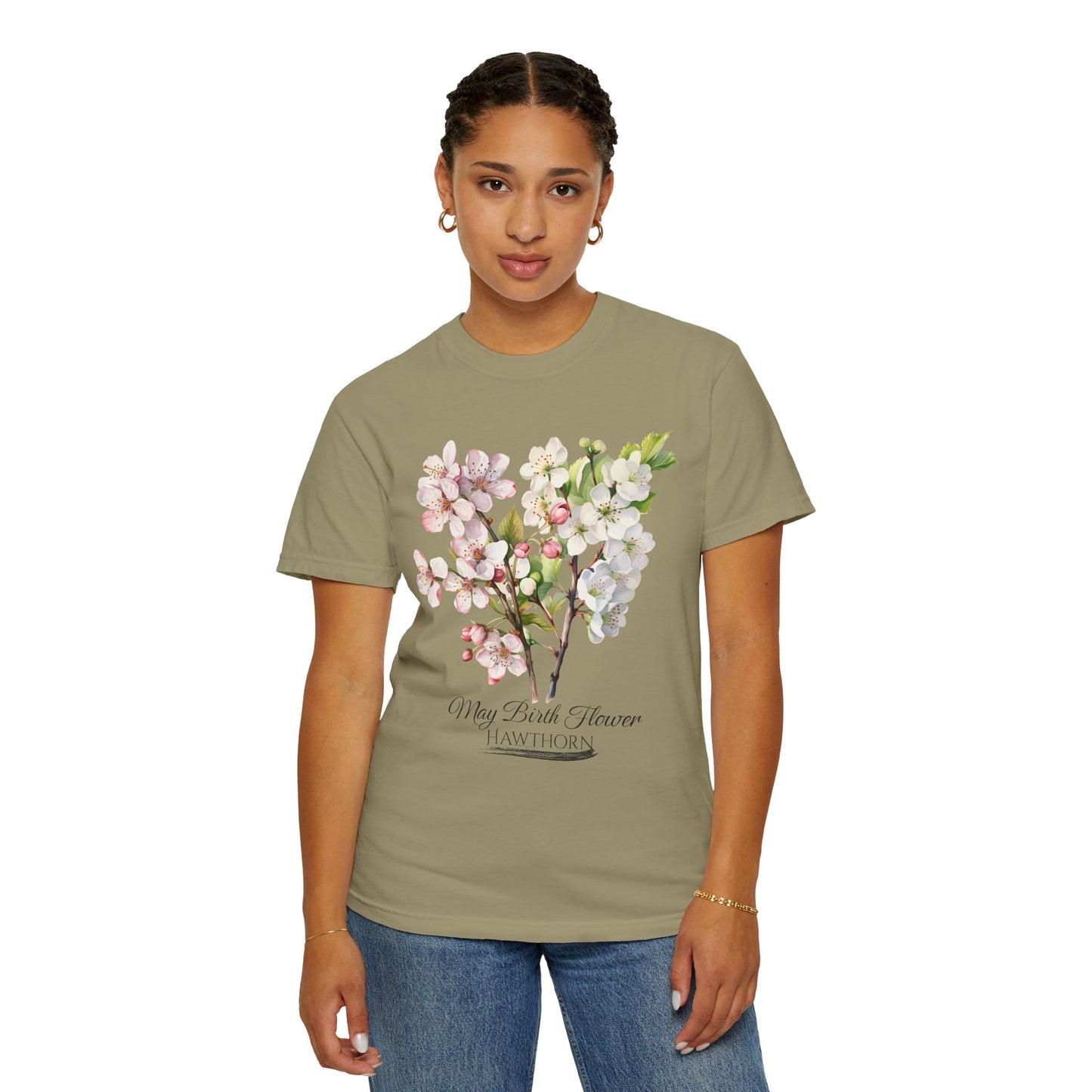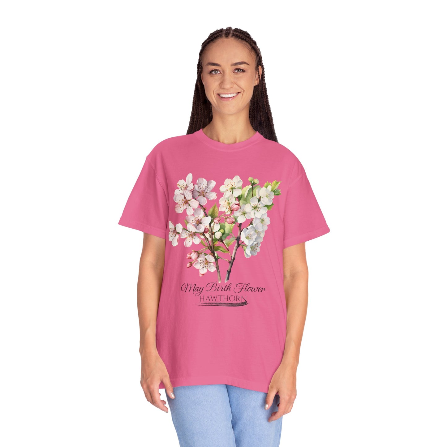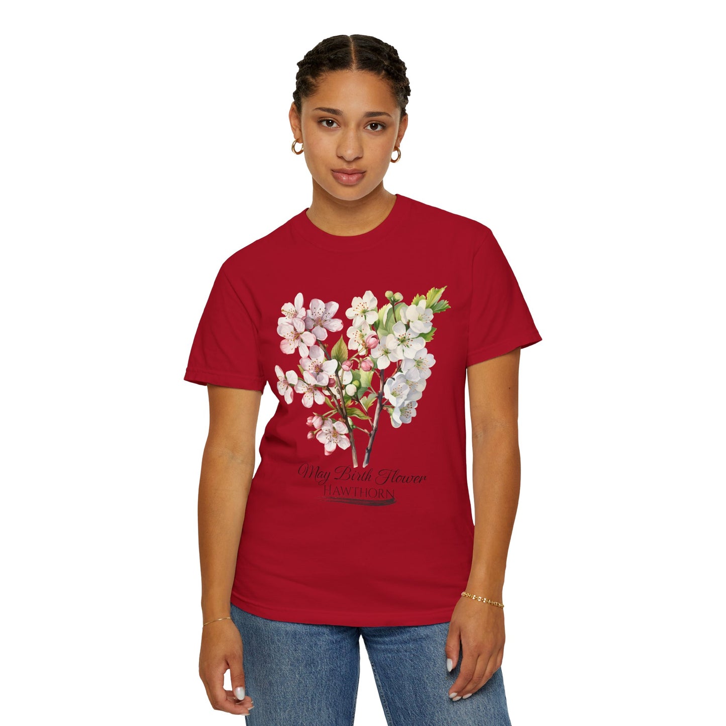 May Birth Flower "Hawthorn" - Unisex Garment-Dyed T-shirt