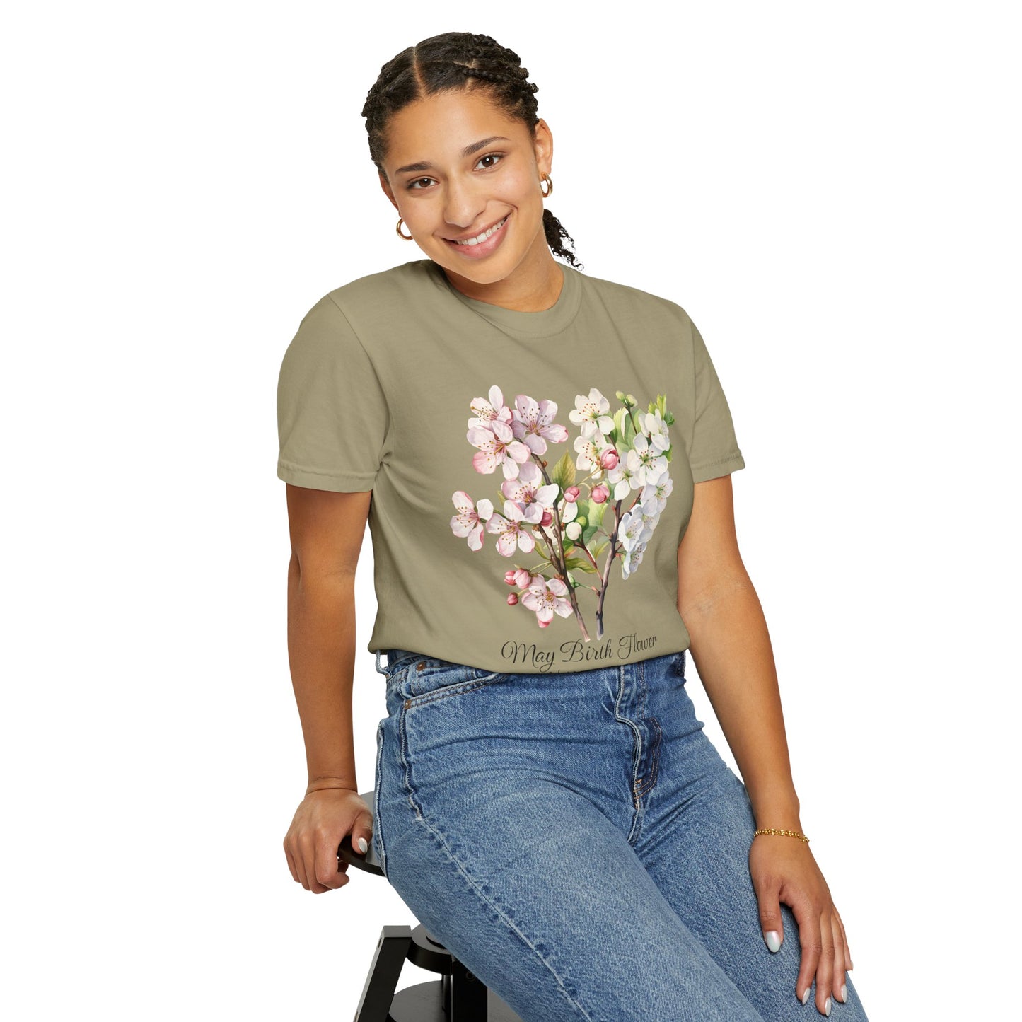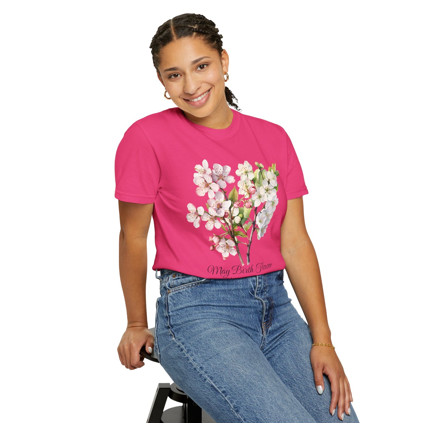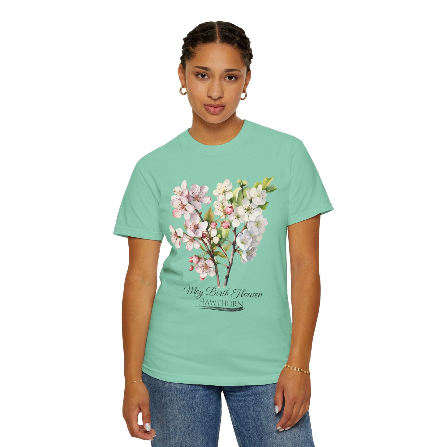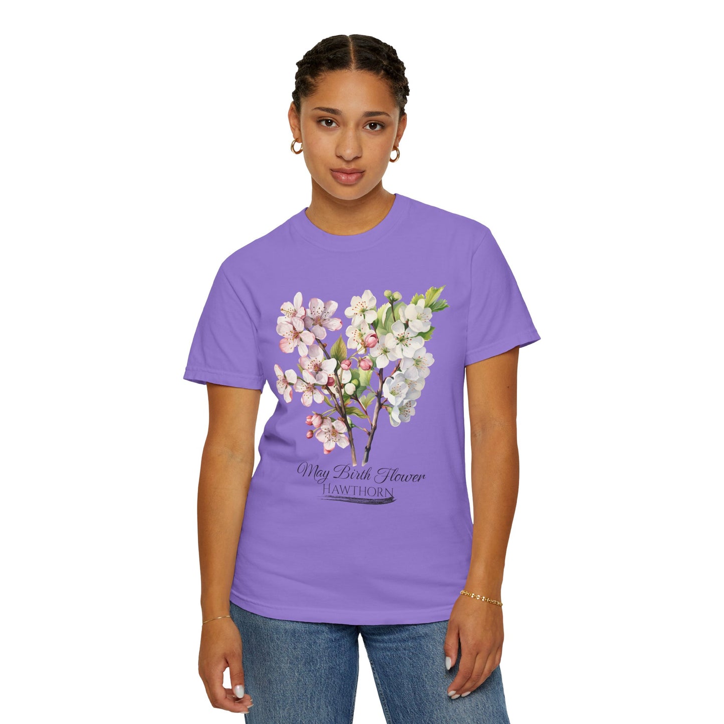 May Birth Flower "Hawthorn" - Unisex Garment-Dyed T-shirt