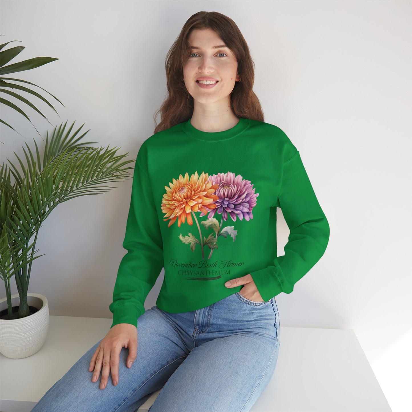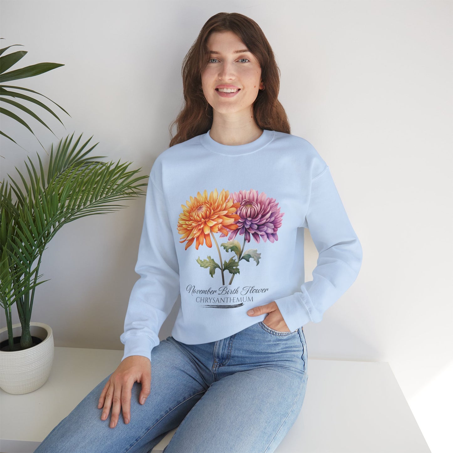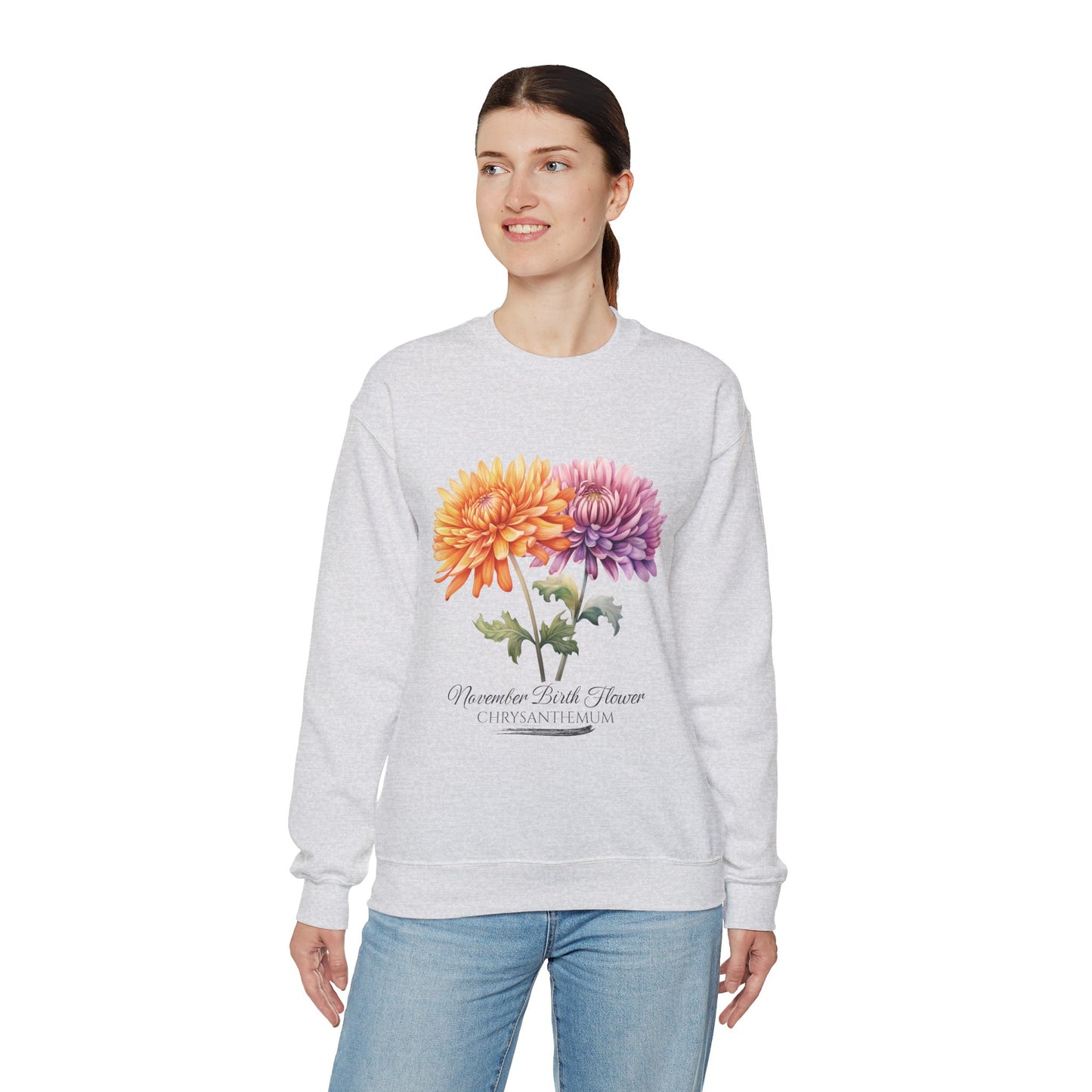 November Birth Flower (Chrysanthemum) - Unisex Heavy Blend™ Crewneck Sweatshirt